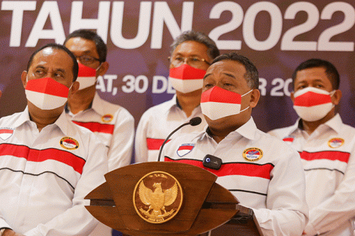 IDXChannel - Kepala BP2MI Benny Rhamdani (tengah) memberikan keterangan dalam Laporan Publik Akhir Tahun 2022 di Jakarta, Jumat (30/12/2022).