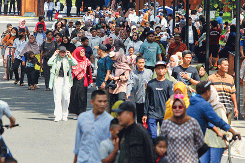IDXChannel - Sejumlah pengunjung berkunjung saat libur Lebaran Idul Fitri 1444 H di Taman Mini Indonesia Indah (TMII), Jakarta Timur, Minggu (23/4/2023).