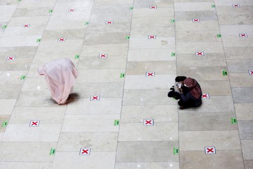 IDXChannel - Jemaah melaksanakan shalat di Masjid Istiqlal, Jakarta, Sabtu (10/4/2021).