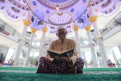 IDXChannel - Jemaah beribadah di Masjid Jami Al Fajri, Jakarta, Sabtu (28/2/2026). Masjid Jami Al Fajri menarik perhatian publik berkat kemegahan arsitekturnya yang mengadopsi gaya Ottoman Turki.