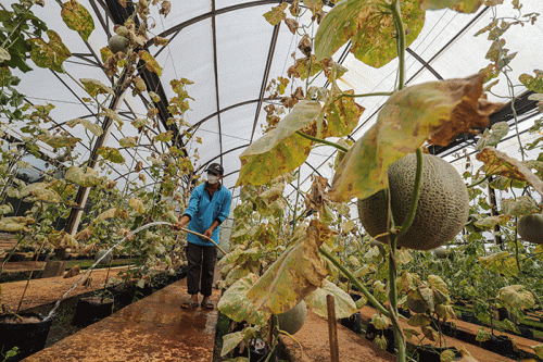 IDXChannel - Petugas melakukan perawatan buah melon di Argo Edu Wisata (AEW) Cilangkap, Jakarta Timur, Sabtu (12/3/2022).