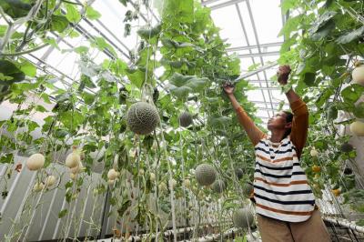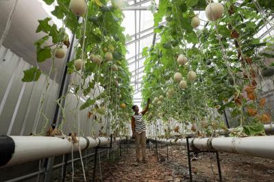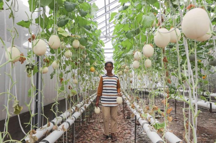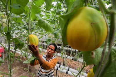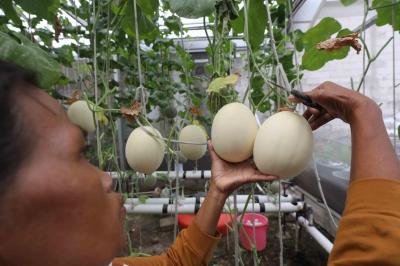IDXChannel - Warga memeriksa buah melon hidroponik di Green House Suara Hijau Farming, Jakarta, Senin (27/10/2025).