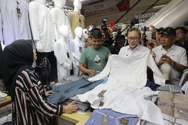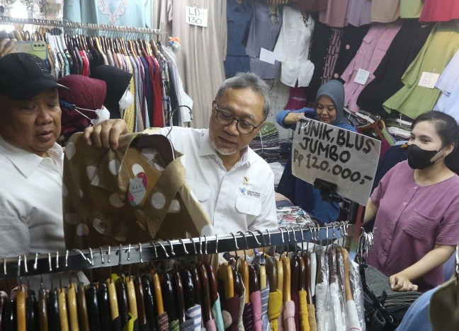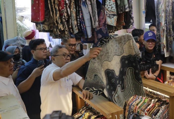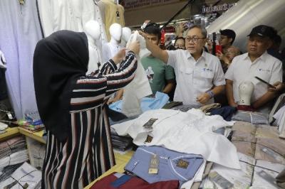 IDXChannel - Menteri Perdagangan Zulkifli Hasan berdialog dengan pedagang dan pengunjung saat menyambangi Blok A Pasar Tanah Abang, Jakarta, Kamis (14/3/2024).