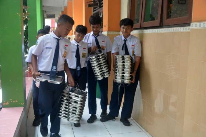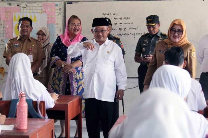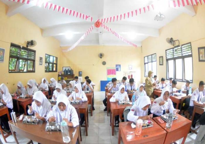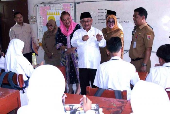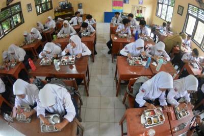 IDXChannel - Menteri Pendidikan Dasar dan Menengah (Mendikdasmen) Abdul Mu'ti, meninjau pelaksanaan program Makan Bergizi Gratis (MBG) perdana di SMP Negeri 12, Kota Semarang, Jawa Tengah, Senin (6/1/2025). Para siswa menyambut antusias program MBG yang menyediakan 797 porsi.