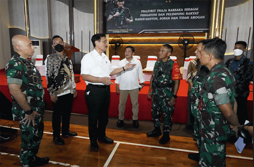 IDXChannel - Menteri Koordinator Maritim dan Investasi (Menko Marves) Jenderal TNI (Purn) Luhut Binsar Panjaitan meninjau secara langsung dan mengecek kesiapan pelaksanaan Gladi Tactical Floor Game (TFG) II pengamanan VVIP pada penyelenggaraan kegiatan Presidensi G20 Tahun 2022 di GOR Praja Raksaka Kepaon Kodam IX/Udayana Bali, Selasa (8/11/2022).