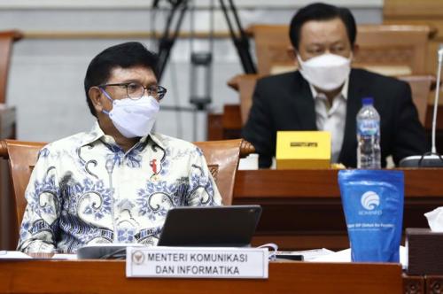 IDXChannel - Menteri Komunikasi dan Informatika Johnny G Plate mengikuti rapat dengar pendapat (RDP) dengan Komisi I DPR tentang perkembangan persiapan pelaksanaan digitalisasi penyiaran (ASO) di komplek Parlemen, Jakarta, Selasa (16/11/2021).