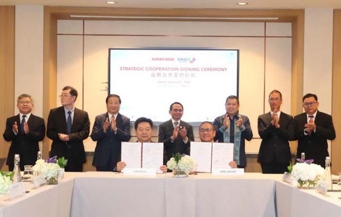 Penandatanganan kerja sama dipimpin langsung oleh Executive Chairman MNC Group Hary Tanoesoedibjo bersama Chairman Shandong Heavy Industry Group Tan Xuguang di Park Hyatt Jakarta, Senin (22/1/2024).