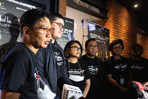 IDXChannel - (kiri kekanan) Direktur Utama MNC Pictures Titan Hermawan, IDN Media Winston Utomo, Produser Susanti Dewi, Wakil Direktur Utama MNC Pictures Bapak Filriyadi Kusmara, Sutradara Fajar Nugros dan Head of Movie MNC Pictures Emilka Chaidir dalam acara Press Conference Film Srimulat "Hil yang Mustahal"* di CGV Mall Grand Indonesia, Jakarta, Jumat (22/4/2022).