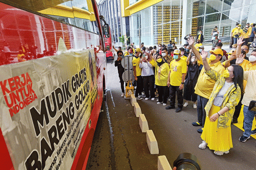 IDXChannel - Menteri Koordinator Bidang Perekonomian yang juga Ketua Umum DPP Partai Golkar Airlangga Hartarto melepas program Mudik Gratis Partai Golkar di Jakarta Barat, Jumat (29/4/2022).