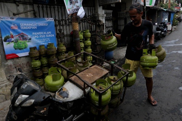 IDXChannel - Pekerja menata tabung liquefied petroleum gas (LPG) 3 Kg di salah satu agen di kawasan Jakarta, Jumat (29/12/2023). Pemerintah mendorong penyaluran liquefied petroleum gas (LPG) 3 Kg lebih tepat sasaran dengan menggunakan Kartu Tanda Penduduk (KTP) mulai 1 Januari 2024.