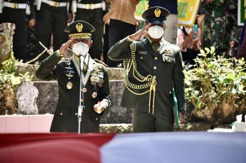 Pangdam dalam sambutannya menyampaikan bela sungkawa yang sedalam-dalamnya atas nama seluruh teman, sejawat almarhum serta bangsa dan negara, kepada Praka Rahman yang telah berjuang dengan ikhlas dan gagah berani membela Ibu Pertiwi.