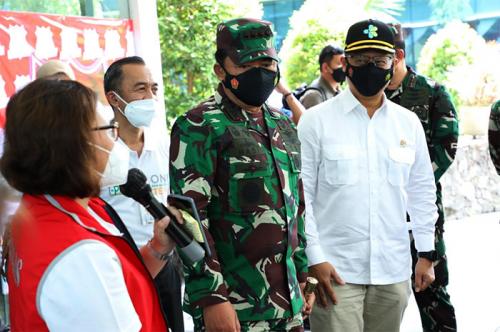 Panglima TNI bersama rombongan langsung meninjau pelaksanaan serbuan vaksinasi dengan target 3.500 dosis dengan sasaran vaksinasi karyawan Pabrik, masyarakat umum dan Ormas PC NU (Pengurus Cabang Nahdlatul Ulama), dengan jumlah vaksinator 85 orang yang terdiri dari, 14 vaksinator TNI, 10 vaksinator Polri, 26 vaksinator Dinkes dan 35 Relawan Nakes.