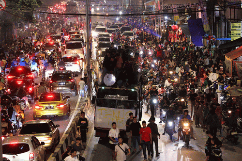 IDXChannel - Sejumlah remaja mengikuti pawai takbir keliling saat malam takbiran di Tanah Abang, Jakarta, Jumat, (21/4/2023). Takbiran keliling ini dalam rangka menyambut hari raya Idul Fitri 1444 H.