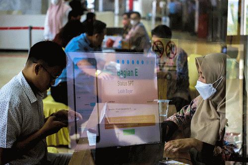 IDXChannel - Karyawan dan staf kesekjenan DPR melakukan pelaporan Surat Pemberitahuan Tahunan (SPT) Pajak Pribadi di Gedung DPR, Senayan, Jakarta, Selasa (21/3/2023).