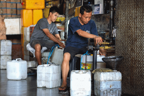 IDXChannel - Penjual memasukkan minyak goreng curah ke dalam jerigen di Kawasan Pasar Cipete, Jakarta Selatan, Jumat (20/5/2022).