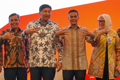 IDXChannel - Direktur Utama PT Bank Tabungan Negara (Persero) Tbk, Nixon LP Napitupulu (kiri), bersama Direktur Commercial Banking BTN, Hermita (kanan), berbincang dengan Menteri Perumahan dan Kawasan Permukiman, Maruarar Sirait (kedua kiri), serta Ketua Umum Kamar Dagang Indonesia, Anindya N. Bakrie (kedua kanan), dalam Sosialisasi KUR Perumahan di Wisma Danantara Indonesia, Jakarta, Senin (8/9/2025).