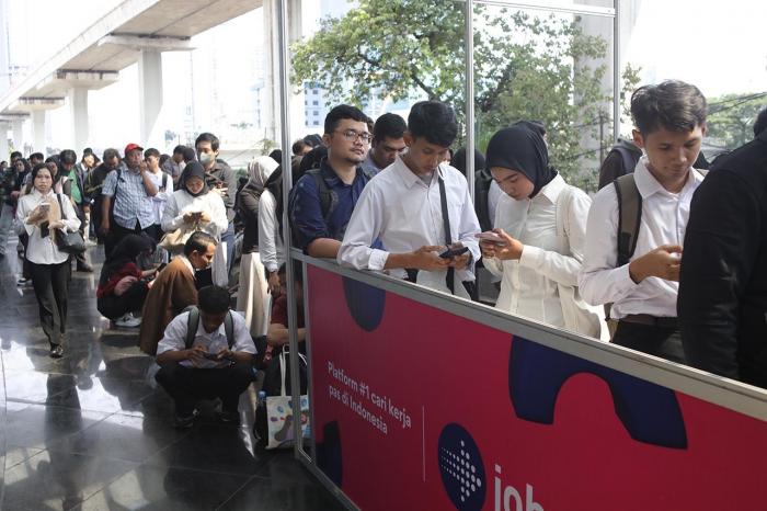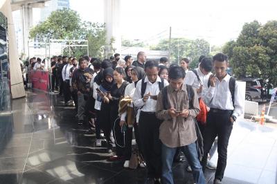 IDXChannel - Pencari kerja mencari informasi lowongan pekerjaan di Mega Career Expo, Jakarta, Jumat (17/4/2026).