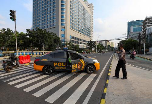 IDXChannel - Aparat Kepolisian menutup sejumlah akses jalan menuju kawasan Pasar Tanah Abang, Jakarta Pusat, Minggu (2/5/2021). Penutupan jalan dilakukan dikarenakan pengunjung yang hendak berbelanja sudah membludak dan Mengakibatkan kemacetan di sejumlah titik jalan menuju pasar.