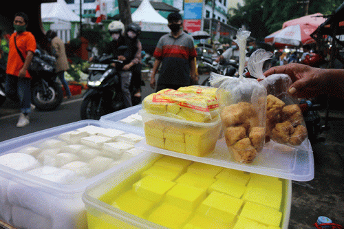 IDXChannel - Pedagang tahu dan tempe di kawasan jalan Pasar Serdang, Kemayoran, Jakarta, Sabtu (19/2/2022).