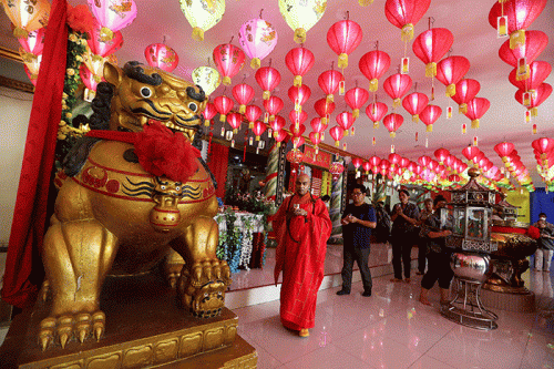IDXChannel - Biksu memimpin ibadah pada rangkaian perayaan Tri Suci Waisak 2566 BE/2022 di Vihara Avalokitesvara, Pondok Cabe, Tangerang Selatan, Banten, Senin (16/5/2022).