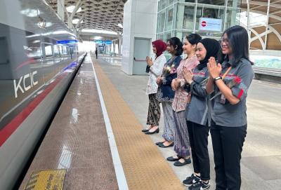 KCIC juga membagikan bunga pada 150 penumpang wanita di Hari Kartini. Hal ini dilakukan sebagai simbol kasih sayang dan penghormatan pada wanita.