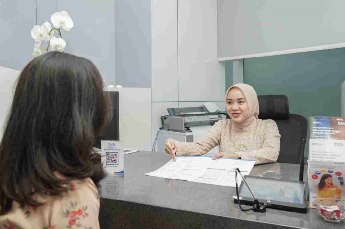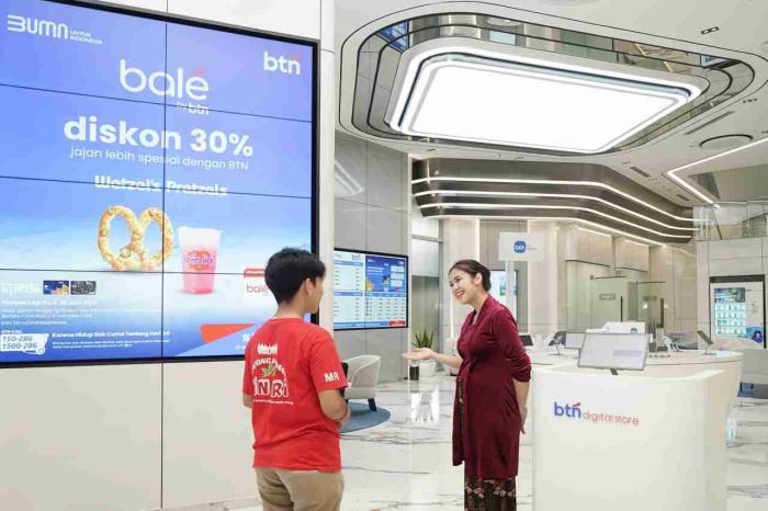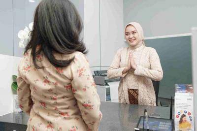 IDXChannel - Pegawai PT Bank Tabungan Negara (Persero) Tbk mengenakan kebaya saat melayani nasabah di Digital Store BTN di Jakarta, Senin (21/4/2025).