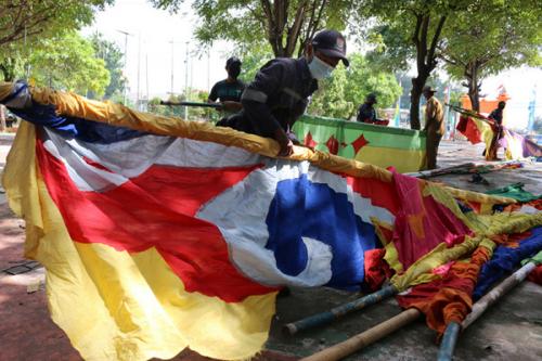 IDXChannel - Unit Kerja Teknis (UKT) 2 Kepulauan Seribu memasang Umbul-umbul serta bendera merah putih disepanjang dermaga dan jalan protokol Pulau Pramuka, Kelurahan Pulau Panggang, Kecamatan Kepulauan Seribu Utara, Selasa (1/6/2021).