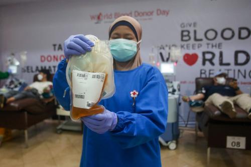 PMI DKI Jakarta menyatakan bahwa seiring dengan lonjakan kasus positif Covid-19 di Ibu Kota, permintaan plasma darah konvalesen meningkat hingga 200 persen.