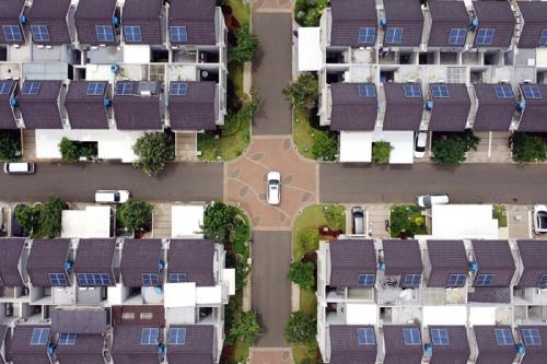 IDXChannel - Foto udara perumahan di kawasan Serpong menggunakan Sollar Panel, Selasa (14/12/2021).