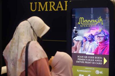Wahana tersebut menawarkan pengalaman haji dan umroh secara virtual dengan menggunakan sensor gerakan yang dibuka hingga 6 April 2025.