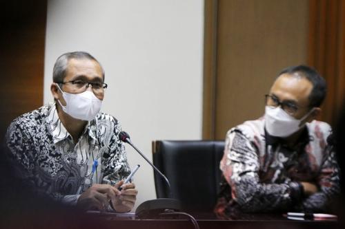 IDXChannel - Wakil Ketua KPK Alexander Marwata (kanan) bersama Kepala Pusat Pelaporan dan Analisis Transaksi Keuangan (PPATK) Ivan Yustiavandana (kiri) memberikan keterangan pers saat berkunjung di Gedung Merah Putih KPK, Jakarta, Rabu (17/11/2021).
