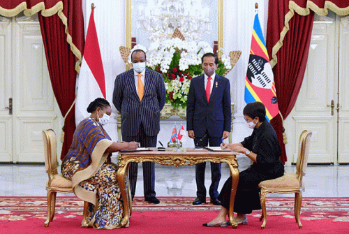 IDXChannel - Presiden Joko Widodo dan Raja Eswatini, Mswati III, menyaksikan penandatanganan nota kesepahaman perkuatan kerja sama bilateral antara kedua negara di Istana Merdeka, Jakarta, Kamis (25/8/2022).