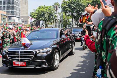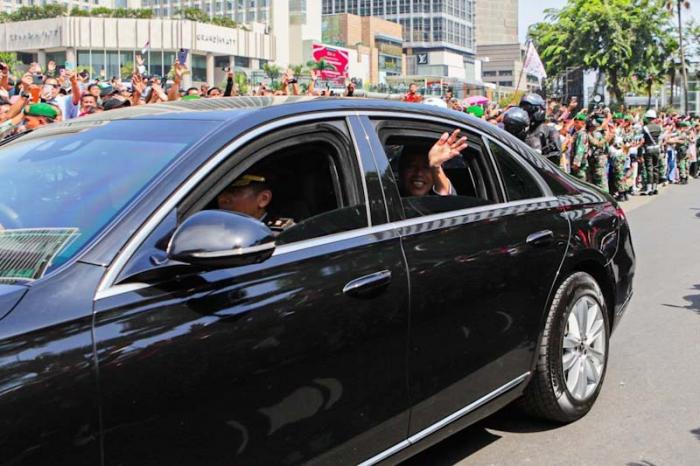IDXChannel - Presiden Joko Widodo disambut ribuan warga yang memadati kawasan Bundaran Hotel Indonesia saat menuju ke Gedung Parlemen untuk menghadiri pelantikan Prabowo-Gibran, Minggu (20/10/2024).