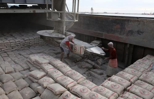 IDXChannel - Pekerja memindahkan karung semen ke atas kapal di dermaga Semen Padang, Teluk Bayur, Padang, Sumatera Barat, Rabu (24/11/2021).