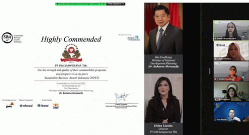 PT HM Sampoerna Tbk. (Sampoerna) menerima Sustainability Business Award 2021/2022 untuk kategori Highly Commended for Strength & Quality of Sustainability Programs melalui acara yang digelar secara daring. Penghargaan oleh Global Initiative ini diberikan kepada perusahaan yang memiliki komitmen keberlanjutan yang sangat kuat dan menunjukkan usaha yang konsisten dalam berbagai area keberlanjutan serta memiliki peta jalan yang baik.