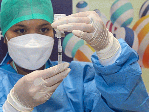 IDXChannel - Tenaga Kesehatan menyuntikan vaksin booster Pfizer dan Astrazeneca ke warga untuk mencegah penyebaran Covid-19 di Depok, Jawa Barat, Senin (21/2/2022).