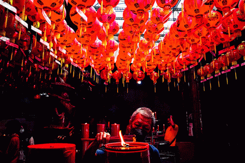 IDXChannel - Jemaat saat sembahyang pada Tahun Baru Imlek dengan mengedepankan penerapan protokol kesehatan di Kelenteng Bio Hok Tek Tjeng Sin, Jakarta, Selasa (1/2/2022).