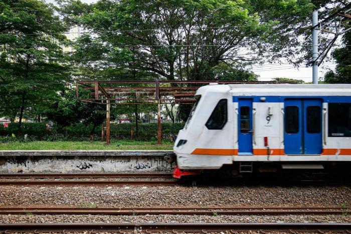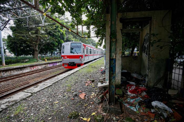 IDXChannel - Kereta rel listrik (KRL) Commuterline melintas di Stasiun Mampang yang sudah tidak beroperasi, di kawasan Menteng, Jakarta, Rabu (15/4/2026).