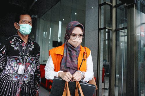 IDXChannel - Terdakwa Bupati Probolinggo nonaktif, Puput Tantriana Sari usai menjalani sidang lanjutan yang digelar secara Virtual di Gedung KPK Merah Putih, Jakarta, Kamis (7/4/2022).