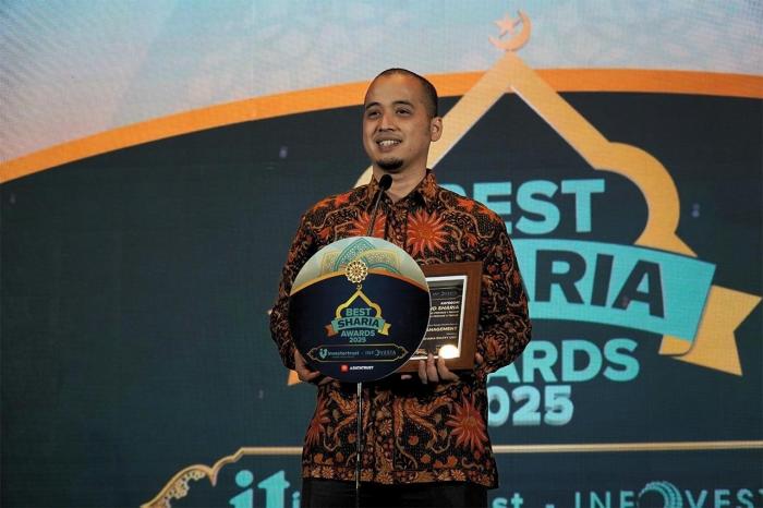 IDXChannel - Kepala Unit Pengelolaan Investasi Syariah STAR Asset Management Adri Firmansyah saat menerima penghargaan dalam ajang Best Sharia Awards 2025 di Jakarta