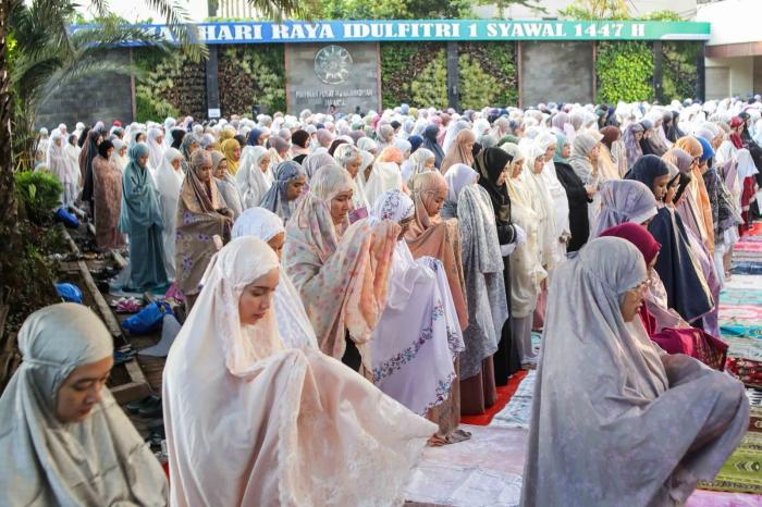 Salat Idulfitri tahun ini digelar berdasarkan penetapan PP Muhammadiyah yang menetapkan Jumat, 20 Maret 2026 sebagai 1 Syawal 1447 Hijriah melalui metode hisab hakiki wujudul hilal.