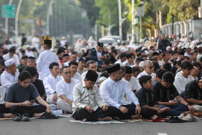 IDXChannel - Antusiasme tinggi umat muslim untuk melaksanakan salat idulfitri di halaman parkir Gedung Pimpinan Pusat (PP) Muhammadiyah, Jalan Menteng Raya, Jakarta Pusat, Jumat (20/3/2026).