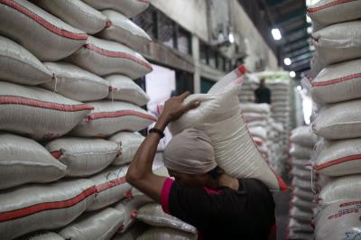 IDXChannel - Pekerja melakukan bongkar muat beras di Pasar Induk Beras Cipinang, Jakarta, Jumat (15/9/2023). Badan Pangan Nasional (Bapanas) menggelontorkan 4.500 ton beras Stabilisasi Pasokan dan Harga Pangan (SPHP) ke Pasar Induk Beras Cipinang (PIBC) demi menekan harga beras.