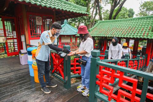 Sebelum pengunjung menaiki wahana akan diberikan hand sanitizer dan setelah seselai petugas yang berjaga membersihkan wahana dengan desinfektan.