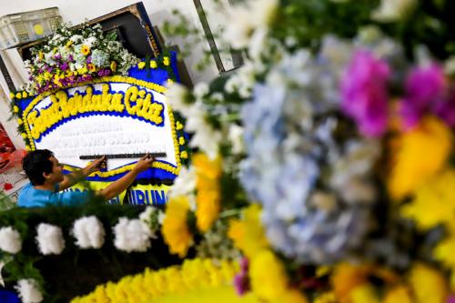 IDXChannel - Pekerja saat membuat pesanan karangan bunga duka cita di kawasan Jakarta Barat, Kamis (15/7/2021).