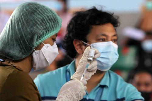 IDXChannel - Vaksinator menyuntikkan vaksin Covid-19 kepada karyawan ritel serta pelaku usaha mikro, kecil dan menengah (UMKM) di GOR Kemayoran, Jakarta Pusat, Sabtu (5/6/2021).