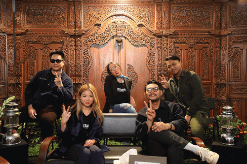 IDXChannel - Cast/host dalam "Katanya" Ben Sihombing (kiri), Managing Director Vision+ Clarissa Tanoesoedibjo (kedua kiri), Director "Katanya" Patricia Gio (tengah), Produser "Katanya" Ainun Najib (kanan) dan CEO Cretivox Broadcasting Network Lukman Benjamin Mulya saat foto bersama usai menggelar Press Conference Serial "Katanya" di Jakarta, Selasa (15/3/2022).