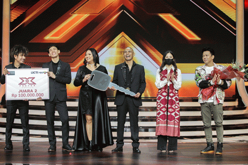 2nd Change berhasil menjadi juara kedua X Factor Indonesia, Wamenparekraf Angela Tanoesoedibjo memberikan langsung hadiah sebesar Rp100 juta.