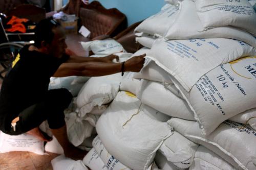 IDXChannel - Warga Pulau Panggang mengambil beras bantuan sosial yang disalurkan oleh pekerja pos dan giro di Kepulauan Seribu Provinsi DKI Jakarta, Senin (2/8/2021).