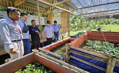 IDXChannel - Pemilik UMKM Perikanan Mutiara Bersama Fish Binaan Astra melalui Yayasan Dharma Bhakti Astra (YDBA) dan PT Pamapersada Nusantara (PAMA), Sufuan Hadi (tengah) didampingi Koordinator Lembaga Pengembangan Bisnis (LPB) Pama Daya Taka, Rusdi Asri (kiri) saat menunjukkan proses budidaya lele yang dilakukannya kepada Sekretaris Pengurus YDBA Ema Poedjiwati Prasetio (kedua kanan), Bendahara Pengurus YDBA Agung K. Sampurno (kanan), Advisor YDBA Tonny Sumartono (kedua kiri) dan CSR Section Head PAMA Suryadi (kanan) dalam kegiatan #UMKMSiapBeraksi di Paser, Kalimantan Timur pada awal pekan ini.